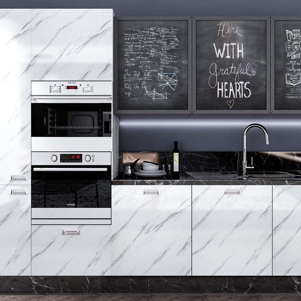 Yenhome Jazz White Marble 60*300cm Wallpaper Contact Paper for Countertops Peel and Stick Wallpaper for Furniture Renovation Kitchen Cabinets Shelf Liner Adhesive Contact Paper Waterproof Home Decorat
