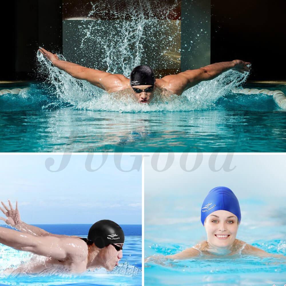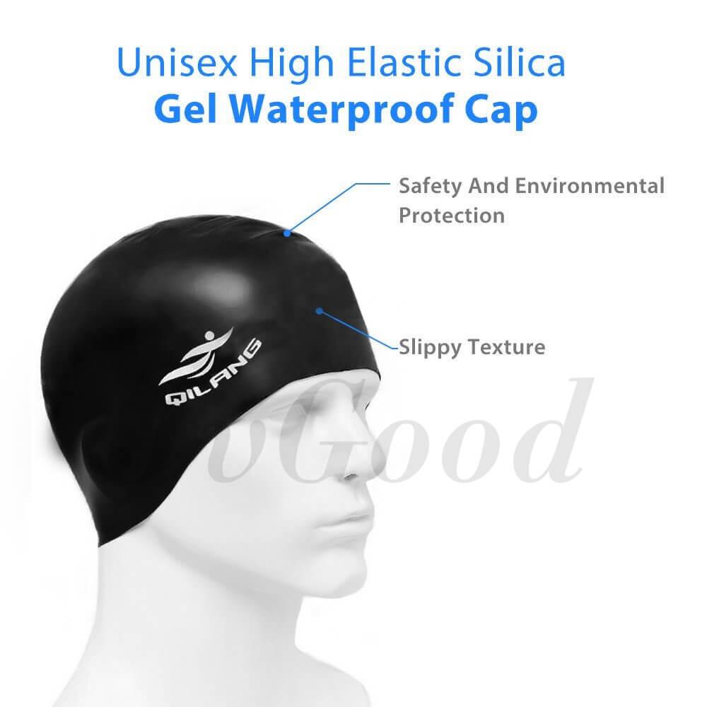 EsoGoal Swim Cap Long Hair Swimming Cap Waterproof Silicone Hat for Adult Woman and Men (Black) - intl
