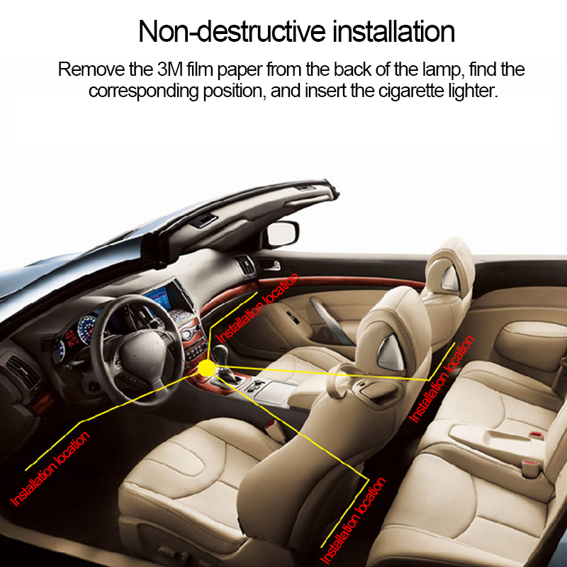 [EASY TO INSTALL] The car interior led come with adhesive tape that is attached to the lighting strips, it’s effective enough. All of the led strips are permanently connected, enough line to go from center console, under the front seats, down the outer sides of the interior to under the dash.
