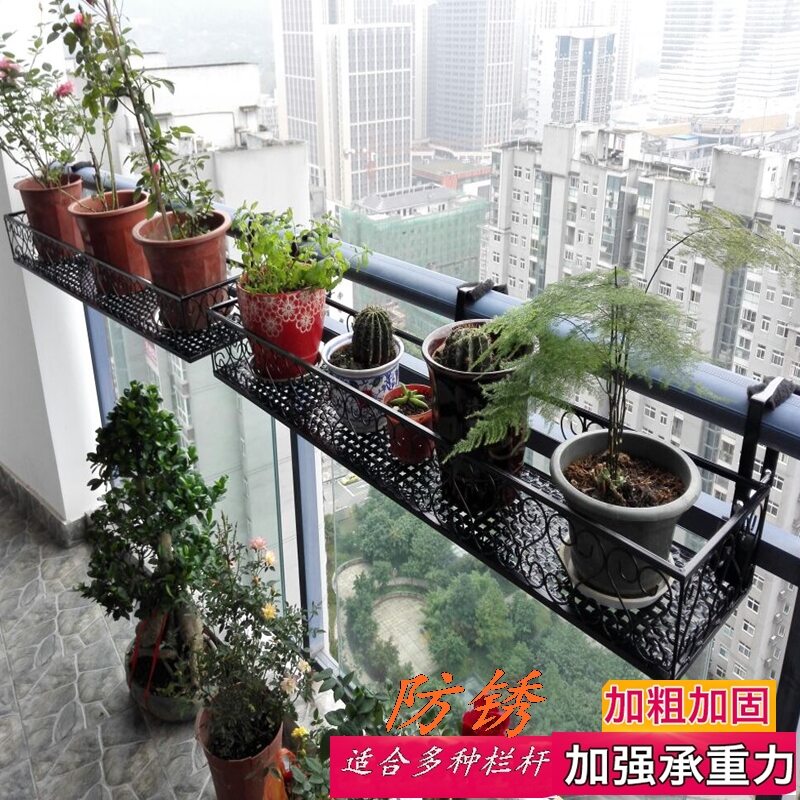 Balcony Flower Rack Hanging Anti-Rust Iron Railing Wall Hanging Flower Pot Fence Multi-Layer Meat Hanging Orchid Epipremnum Aureum Hanging Rack