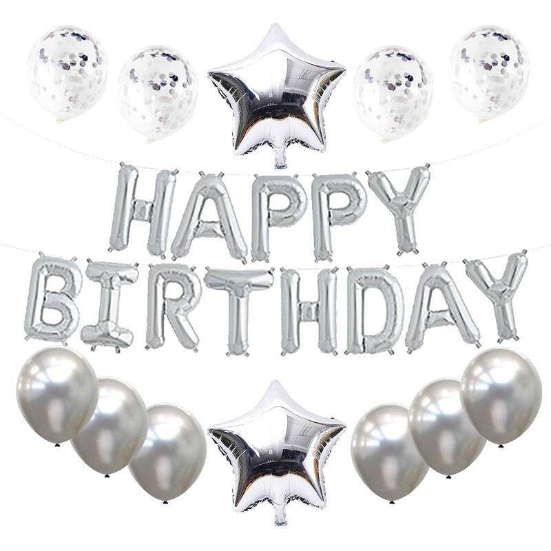 Product type: Balloons Occasion: Christening & Baptism,Wedding,Back To School,Birthday Party,Graduation,Party,Christmas,Wedding & Engagement,Children's Day,New Year,Grand Event,Anniversary Model Number: foil balloon Package include: 6pcs 12inch latex balloons 4pcs 12inch latex confetti balloons 2pcs 18inch foil balloons 1set HAPPY BIRTHDAY letter foil balloons