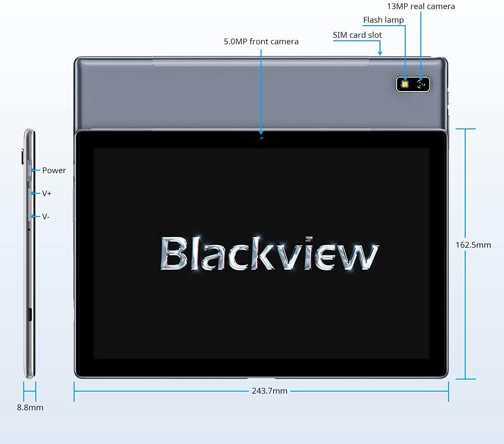 Blackview Tab9 10.1" Android 10 Tab 9 Tablet 1920x1200 Octa Core 4GB RAM 64GB ROM Dual 4G Network 13MP Rear Camera 7480mAh Tablets PC Android based UI design