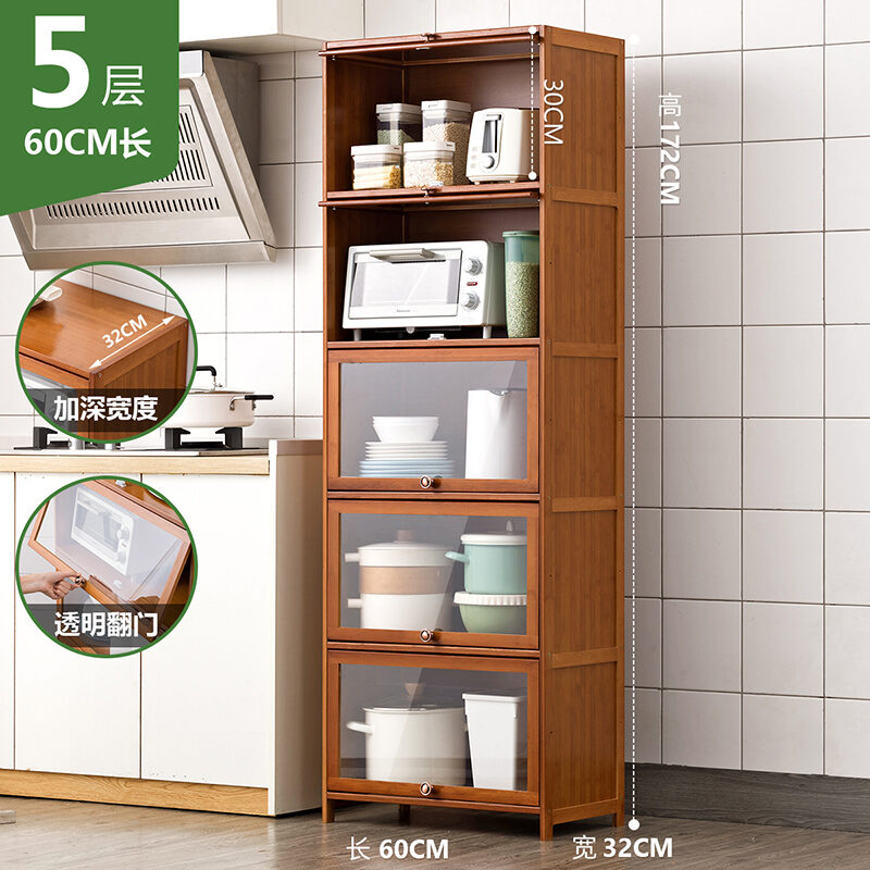 Kitchen Supplies Storage Cabinet Household Complete Floor Multi-Layer Multi-Functional Storage Rack with Door Locker Bookshelf Wood
