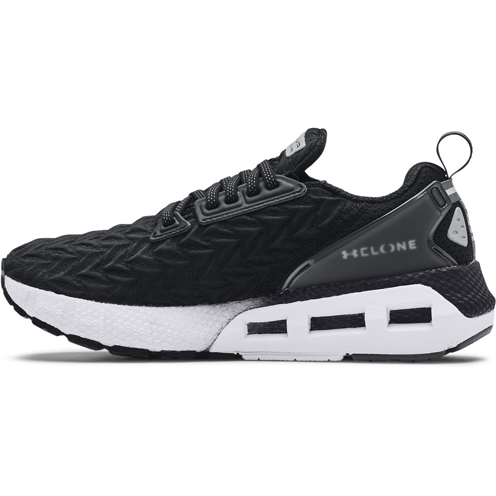 The unique material of the UA Clone upper adapts to your foot's shape and movements for a more precise fit. It also helps keep your foot centered, making sure you get the most out of the soft, responsive UA HOVR cushioning.