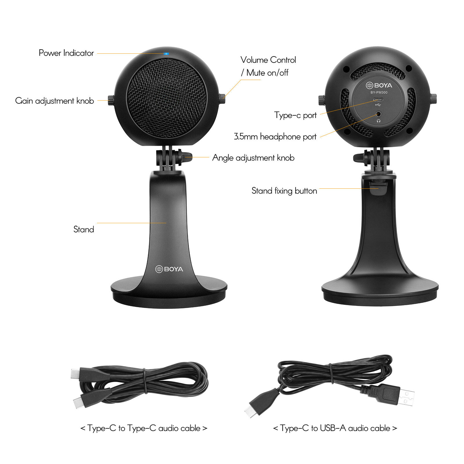 BOYA PM300 Cardioid Microphone Desktop Microphone Real Time Monitoring Mute Function with Type-C to USB-A/Type-C Cable for Smartphone Computer Live Stream Video Shooting Professional Recording Intervi