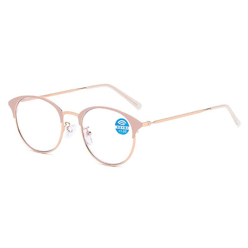 2022 Round Retro Pink Reading Glasses Anti Blue Light Presbyopic Ultralight High Quality Metal Frame Eyeglasses +1.0 +1.5 +2.0 +2.5 +3.0 +3.5 +4.0