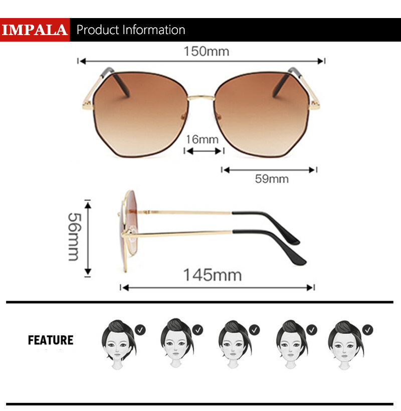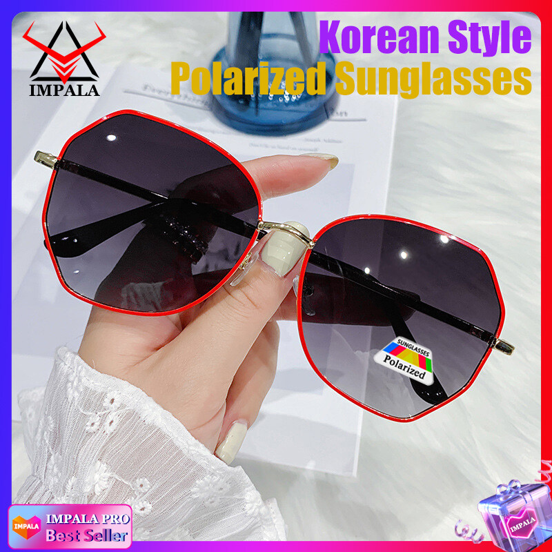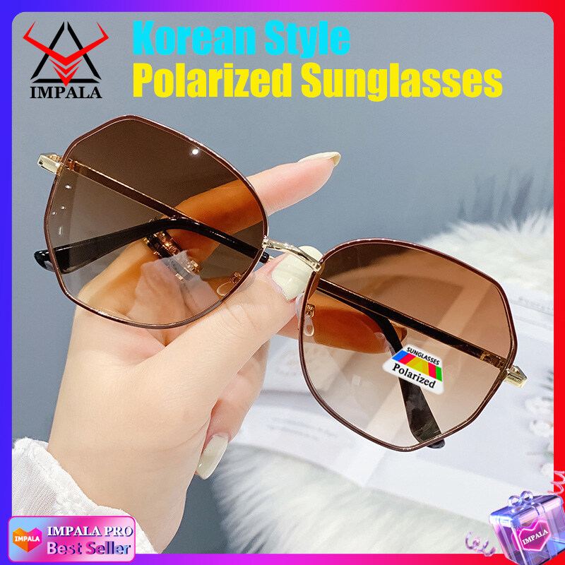 IMPALA PG1638W Fashion Sunglasses for Women Korean Style Polarized Sunglasses Anti Glare UV Protection Driving Eyewear Resin HD Lens Metal Frame Lady Sun Glasses