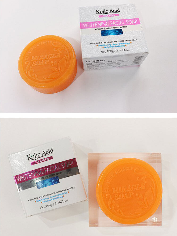 Kojic Acid Collagen Whitening Facial Soap Deep Clean Lightening Dark Spot Melanin Brighten Skin Tone Face Body Skin Bleaching Soap 100g