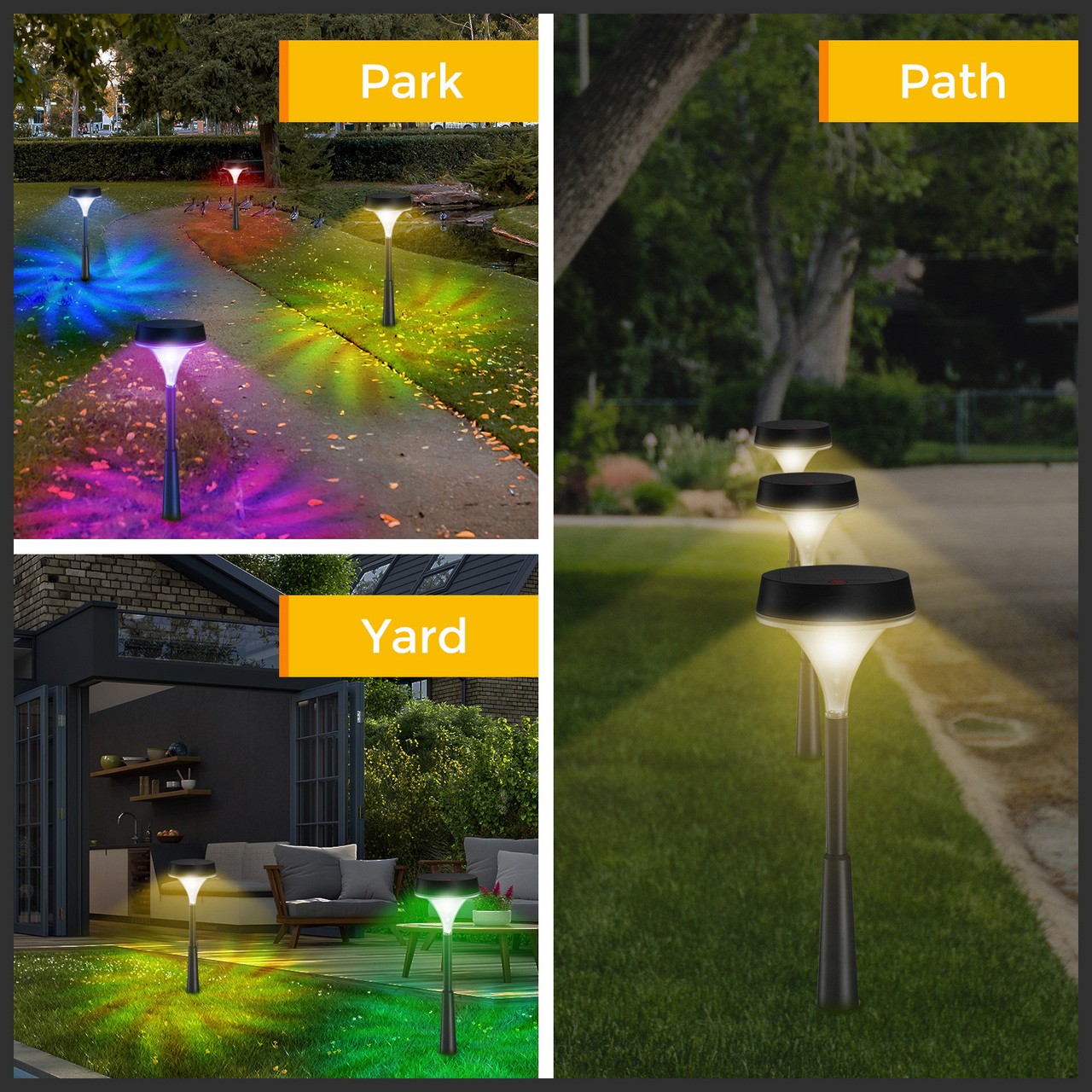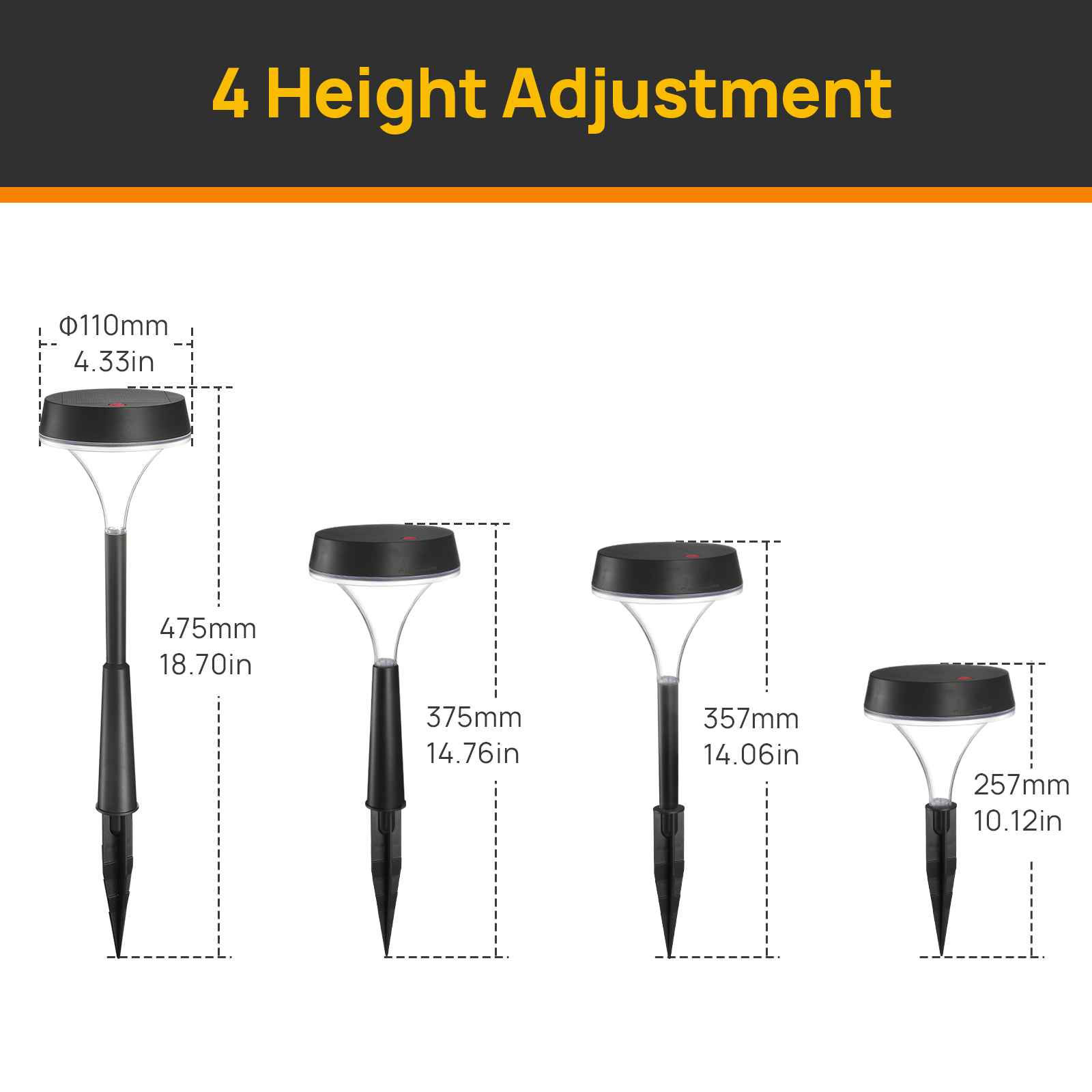 Follow the instructions, our independent wireless designed solar pathway light can be easily installed in a short time. We provided 4 heights for you to choose from, you can decorate your place by freely assembling and choosing a suitable height.