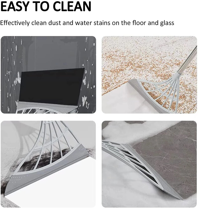 The two-in-one multifunctional broom can not only clean but also scrape, effectively dry the floor surface, and easily remove dirt and hair. Can be used to clean pet hair, hair, liquid, glass.