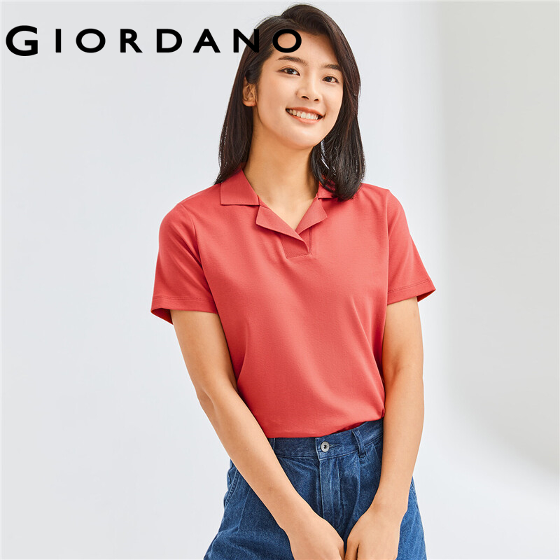 GIORDANO Women Polo Shirts French Collar 100% Cotton Polo Shirts Short Sleeve Solid Color Simple Casual Polo Shirts 05312386