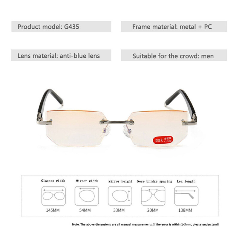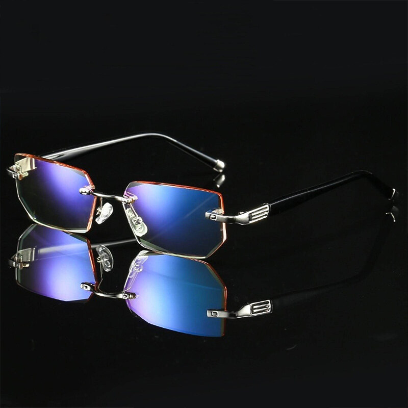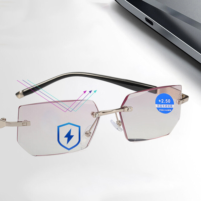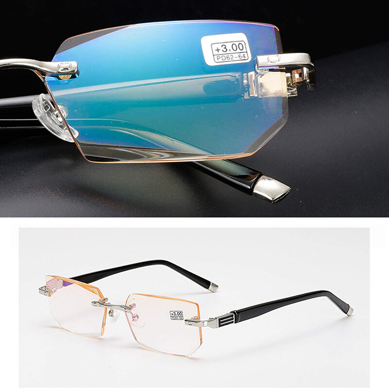 Reading Glasses Anti Blue Light Eyewear Protection Lenses Frameless Diamond Cutting Eyeglasses for Women Men Presbyopic Glasses +1.0 To +4.0