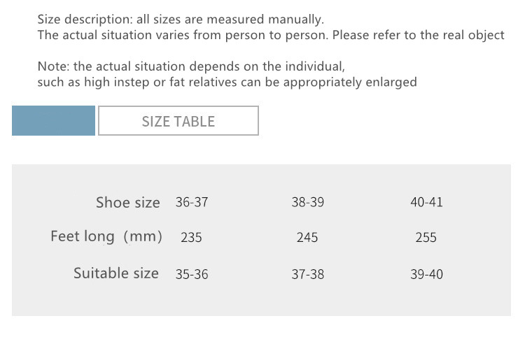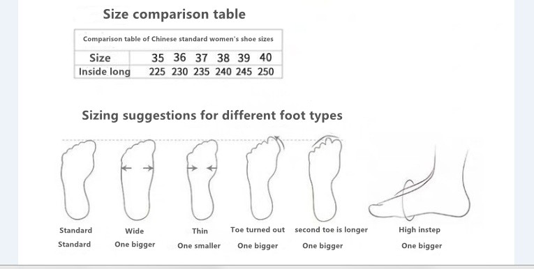 This product is STANDARD SIZE. If your foot size is 36 then order shoe size 36. Foot size 35 can also order shoe size 36.