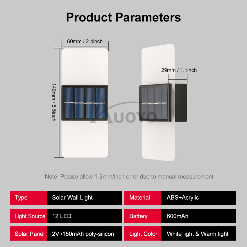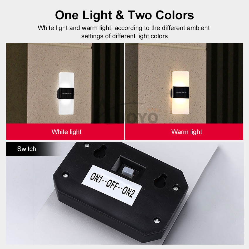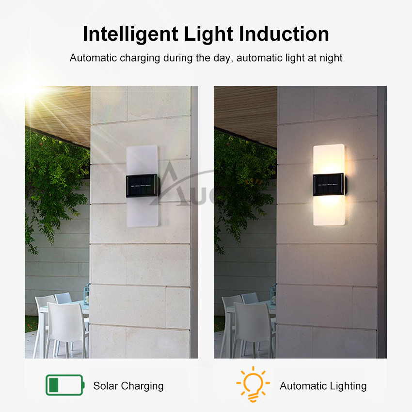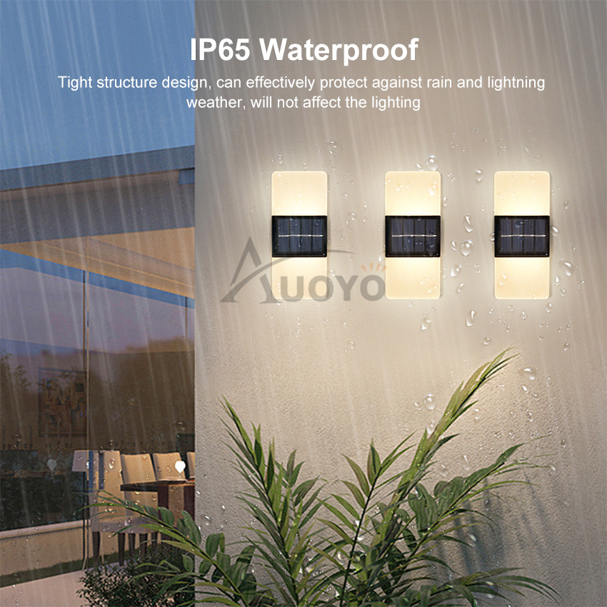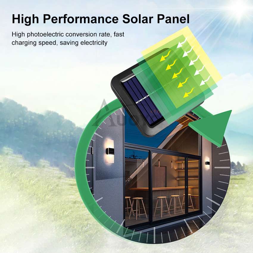 Auoyo Solar Lights Outdoor Waterproof Original Rechargeable Lamp Light Modern Indoor Decor Light Solar Wall Light 14/16LED Wall Lamp Up and Down Double Head For Outdoor Indoor Decorative Bedroom Corri