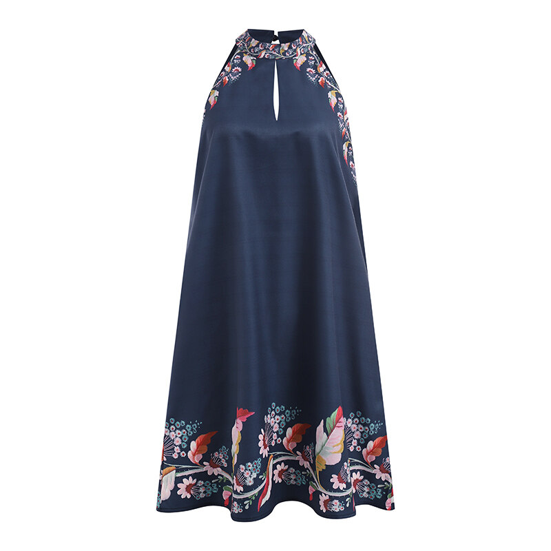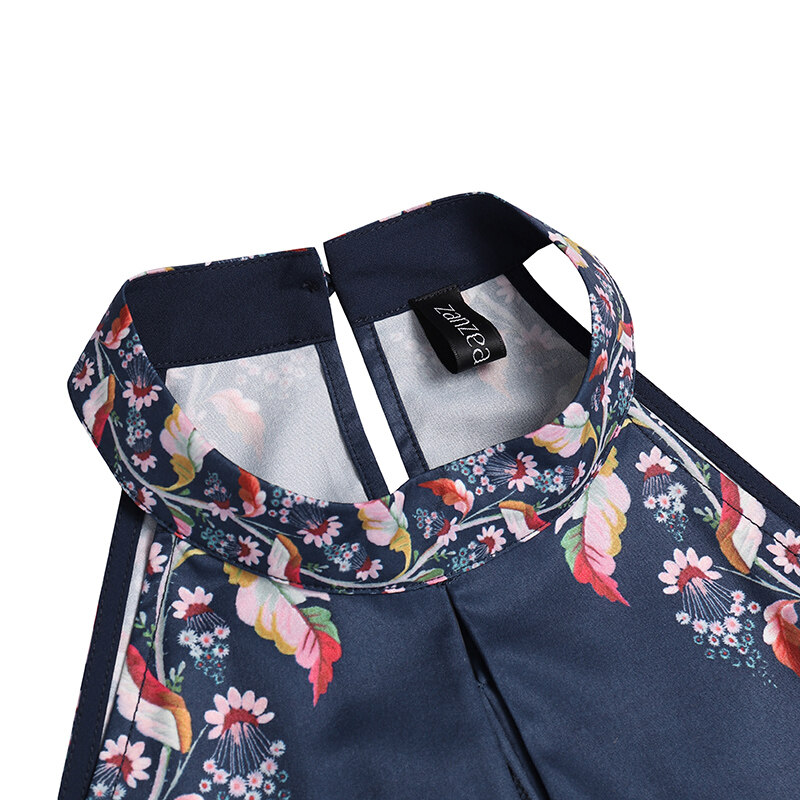 ZANZEA Womens Summer Beach Ethnic Printed Retro Sleeveless Hollow Out Halter Mini Dress
