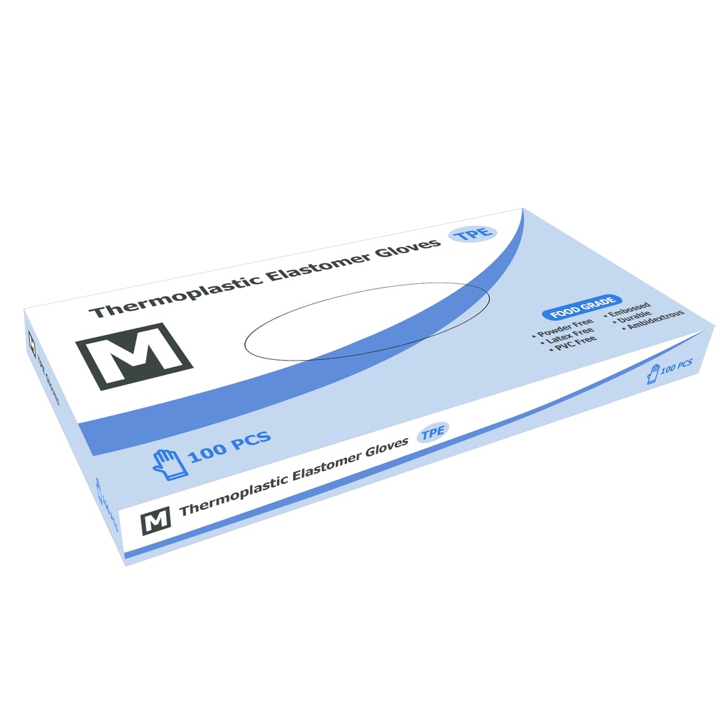TPE gloves are made of thermoplastic elastomers, a type of plastic with high tensile strength and elongation.