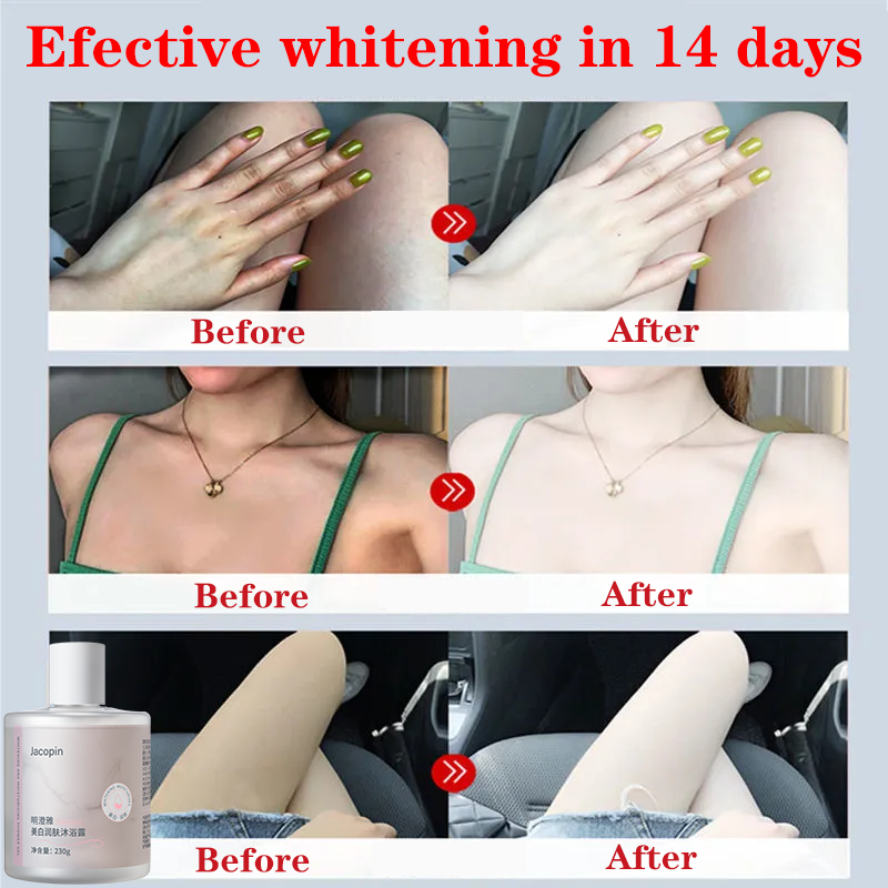 Usage: 1. Take an appropriate amount of Whitening shower gel in the palm of your hand or match it with a shower ball 2. Gently massage the whole body to pro-duce rich foam 3. Rinse with clean water after bathing