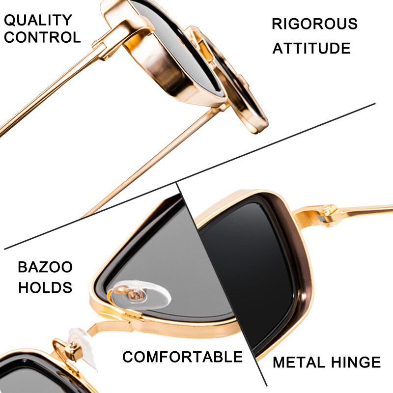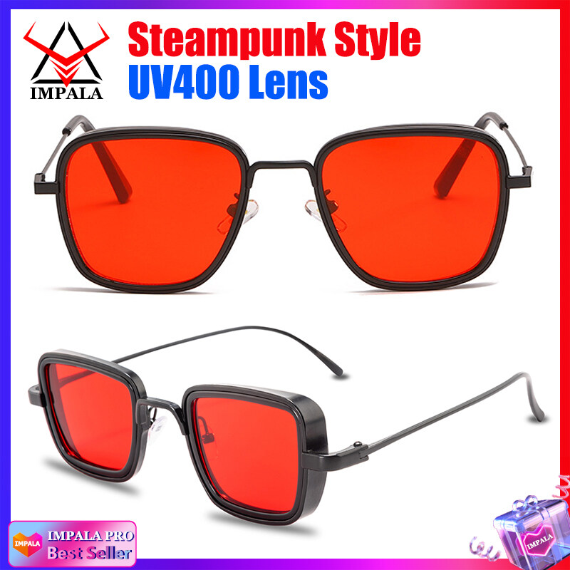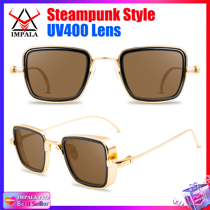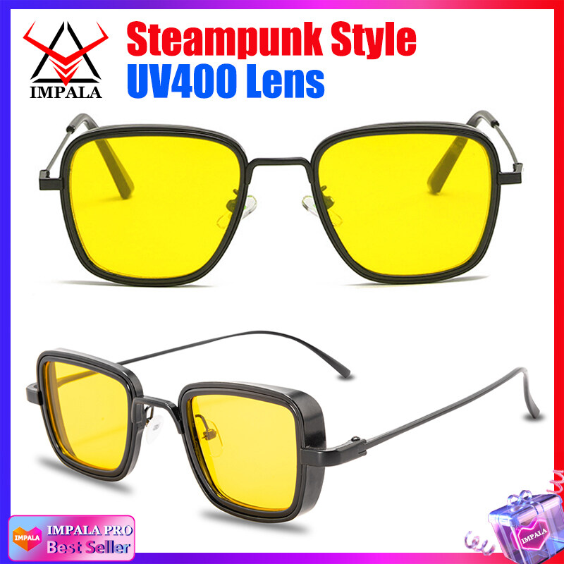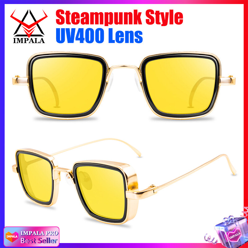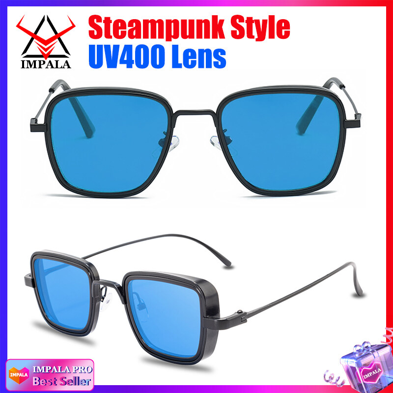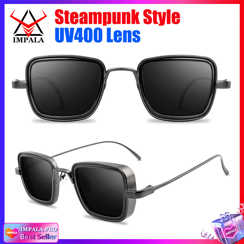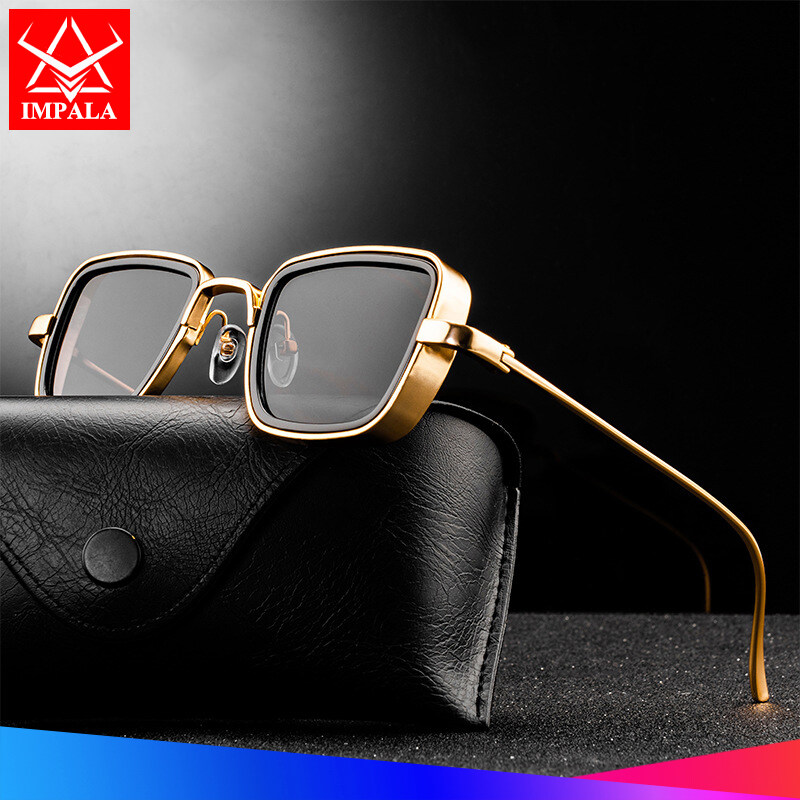 IMPALA QT110W Retro Sunglasses for Men Anti Glare Metal Frame UV Protective Sun Glasses for Driving Fishing Black Spectacles