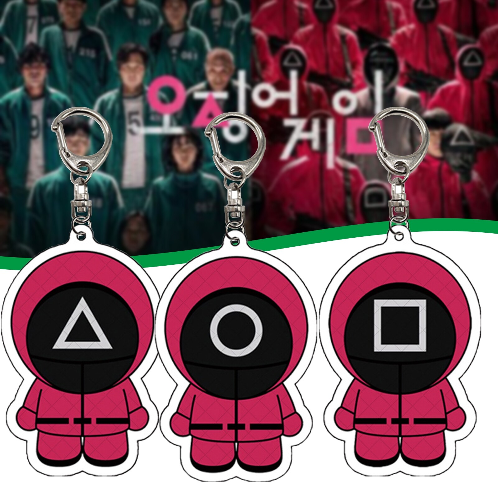 With the characteristic of colored printing and exquisite patterns, the keychain is not easy to fade and deform, has fine workmanship excellent, and a perfect for is deal for souvenir or a perfect gift to your family, girlfriends, or friends who love TV Squid Game. Lightweight size makes it convenient for you to take it with you.