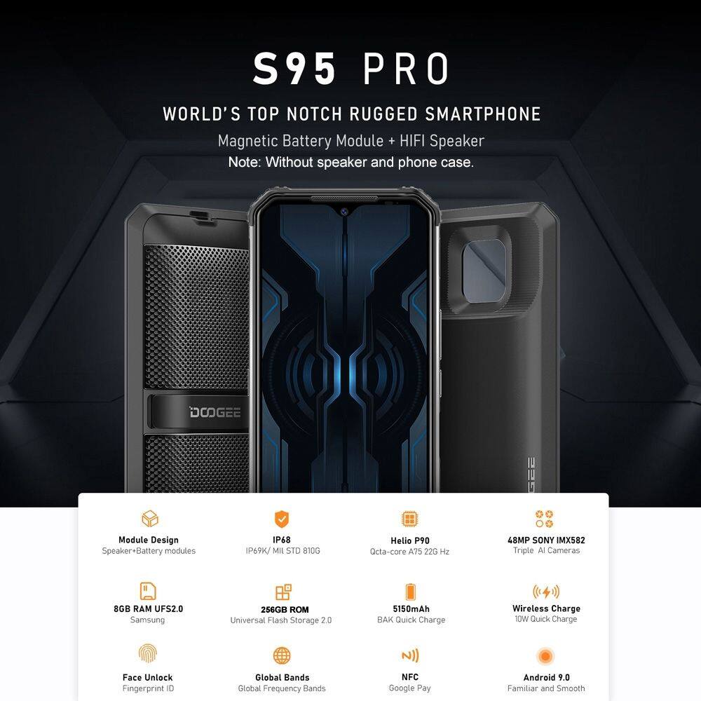 DOOGEE S95 Pro Rugged Phone, 48MP Camera, 8GB+256GB, IP68/IP69K Waterproof Dustproof Shockproof, MIL-STD-810G, 5150mAh , Triple Back Cameras, Face & Fingerprint Identification, 6.3 inch Android 9.0 Pi