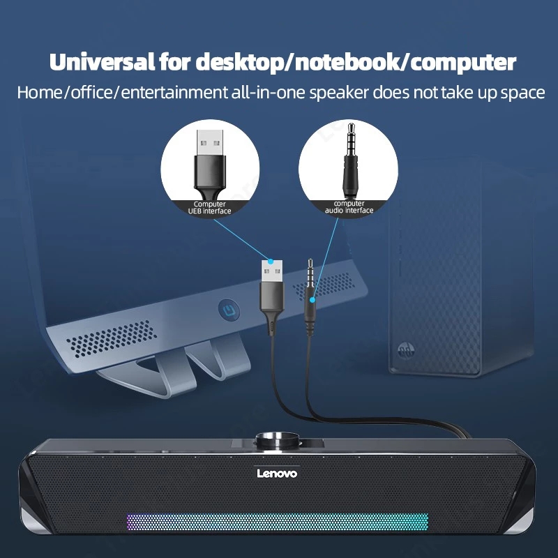Lenovo TS33 Wireless Bluetooth 5.0 Speaker 360 Home Movie Surround Sound Bar Wired Audio Speaker For Desk Computer Subwoofer