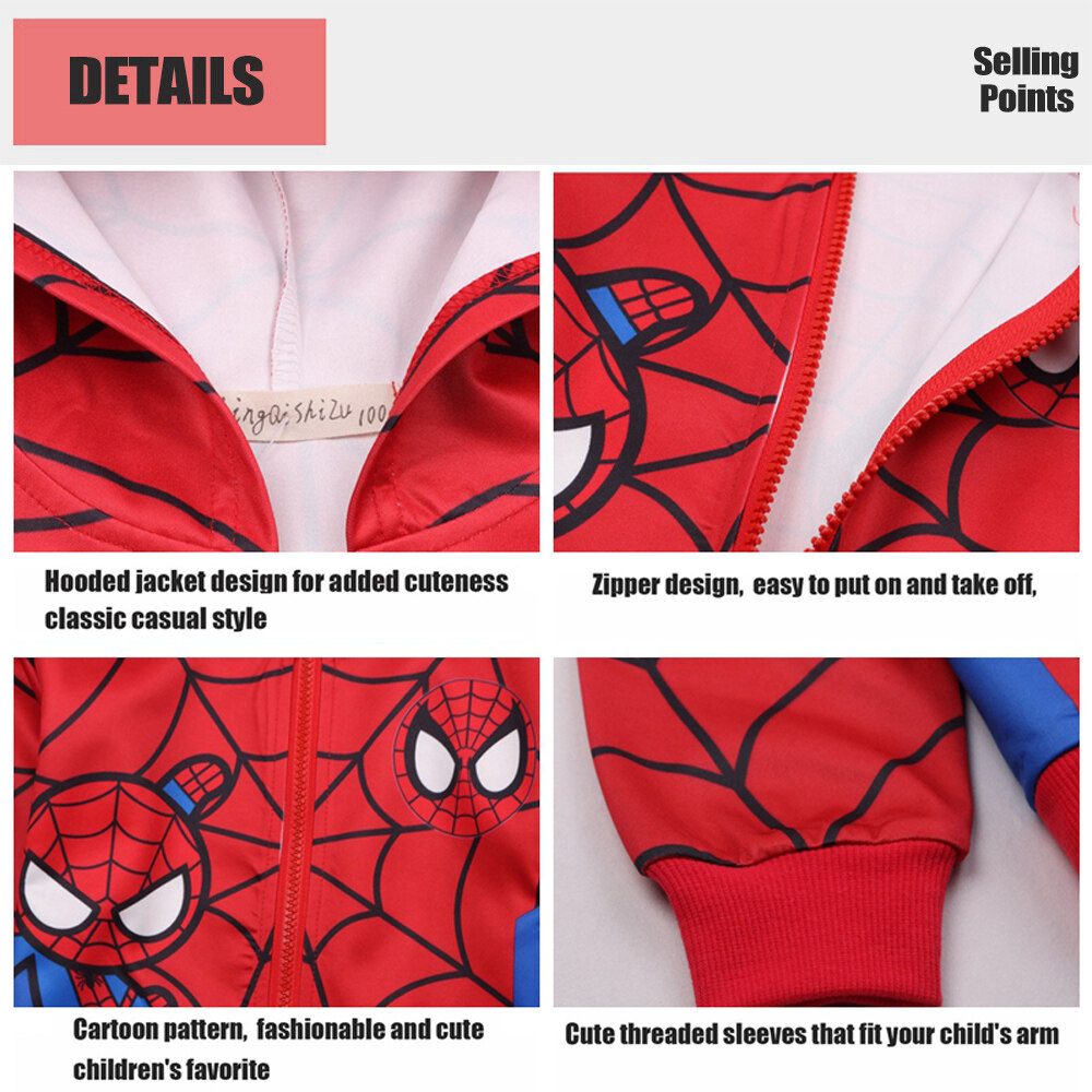 Kids Toddler Baby Boy Cartoon Spider-men Long Sleeve Jacket With Zipper Casual Children Jackets Coats