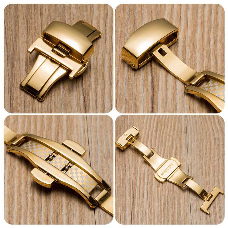 10mm 12mm 14mm 16mm 18mm 20mm 22mm 24mm Stainless Steel Solid Double Push Button Fold Watch Buckle Butterfly Clasp Automatic Rebound Quality Watch Straps Accessories