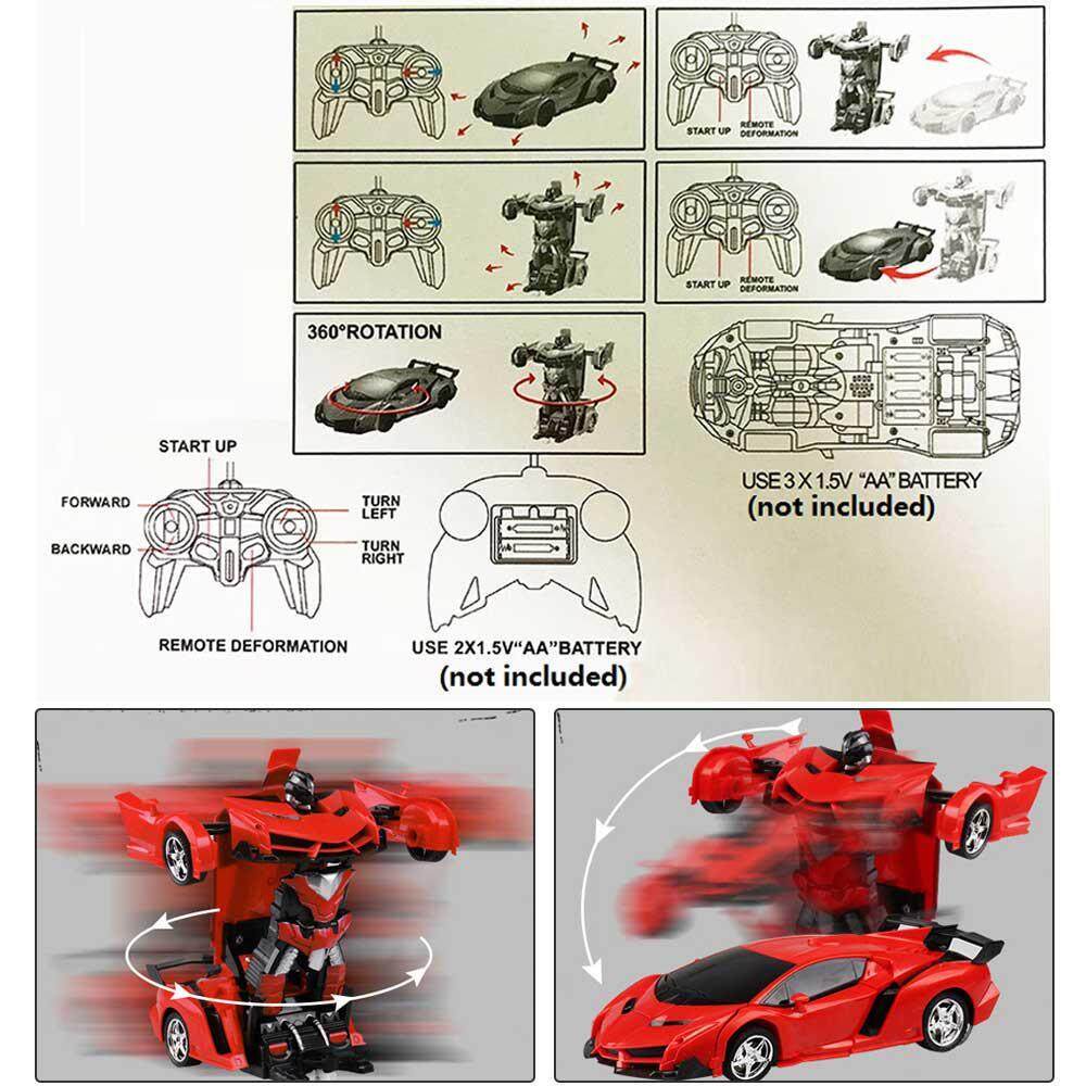Bafada Remote Control Car, RC Car 360°Rotating with One-Button Deformation Function and LED Light, Robot Cars Kit Toy for Kids