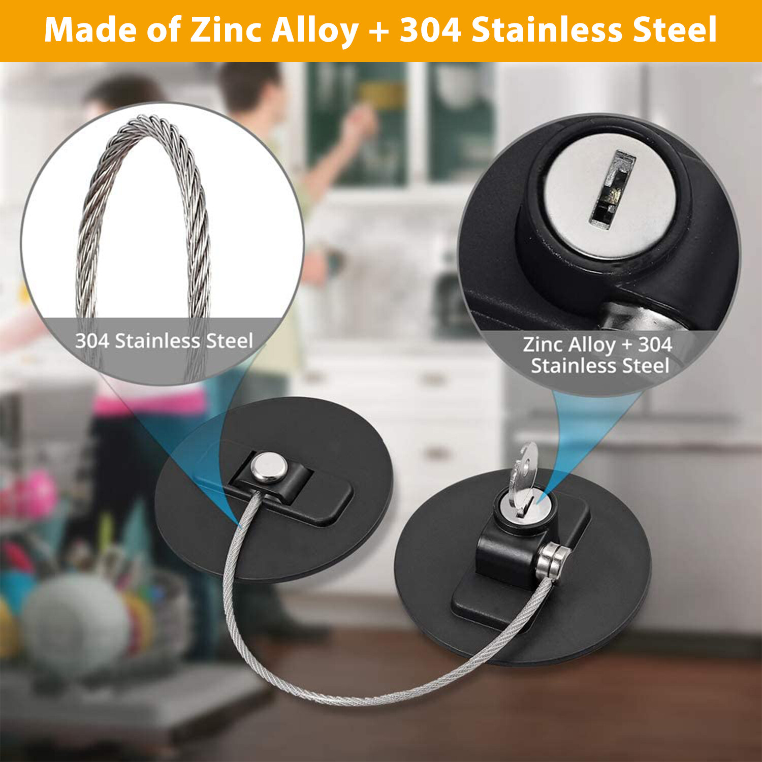 Use as fridge lock (refrigerator lock), freezer lock, cabinet lock, drawer lock, cupboard lock, health care security lock. Also for oven, wash machine, closet, printer tray, paper tray, toilet seat, waste bin, door and more.