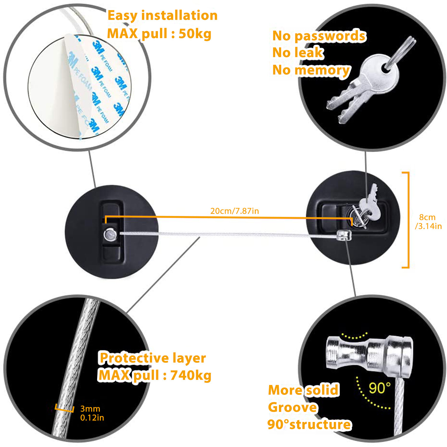 Strong 3.2" diameter plates with 3M adhesive pads and steel aircraft vinyl-covered cables, this high quality fridge lock is a great way of keeping your medicines, alcohol or other sensitive items secured. Protect baby from unexpected danger of opening cabinet or fridge door.