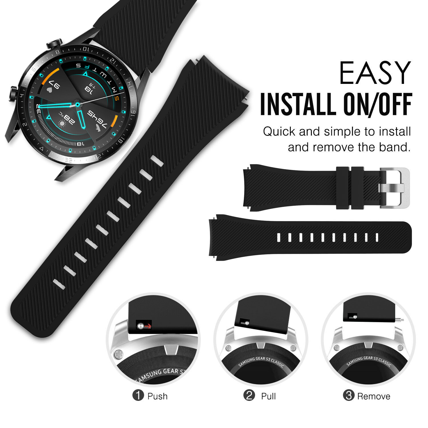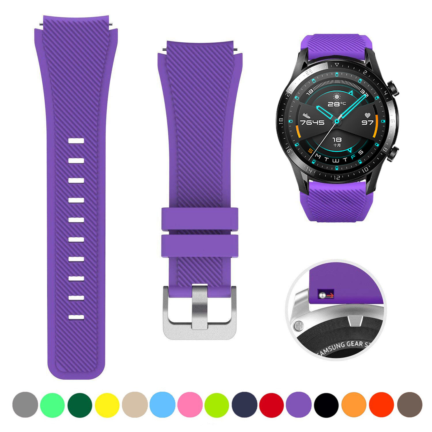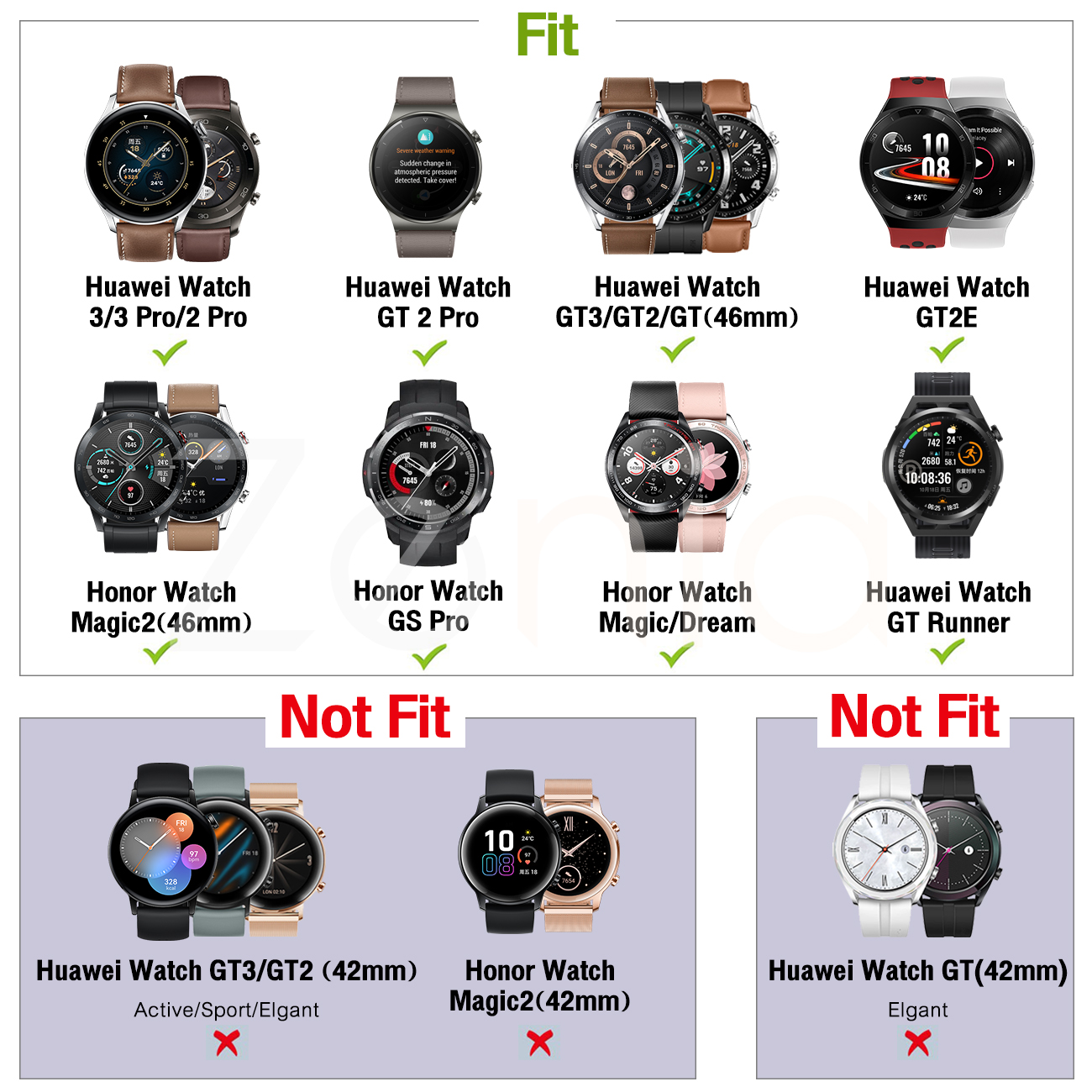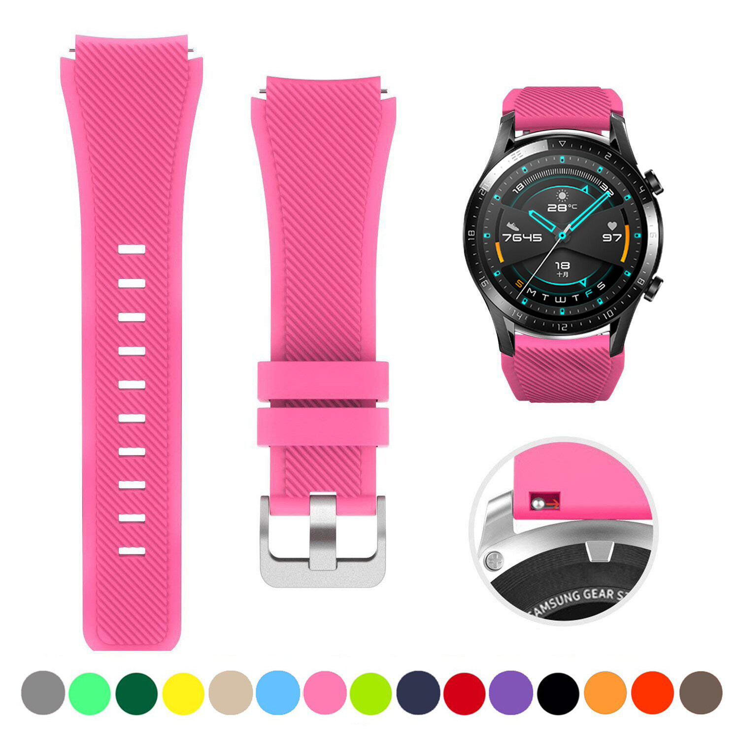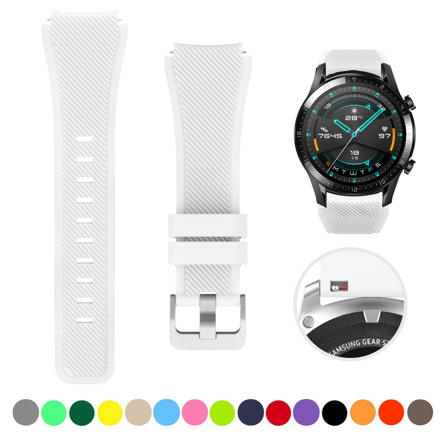Zenia 22mm Width Replacement Classic Silicone Strap Watchband Wrist Band Watch Strap for Huawei Watch GT3/GT/GT 2/GT2/GT 2E/GT2 E/GT2E 46mm Runner Sport/Active/Classic/Elite Watch 2 3 Pro Honor GS/Ma