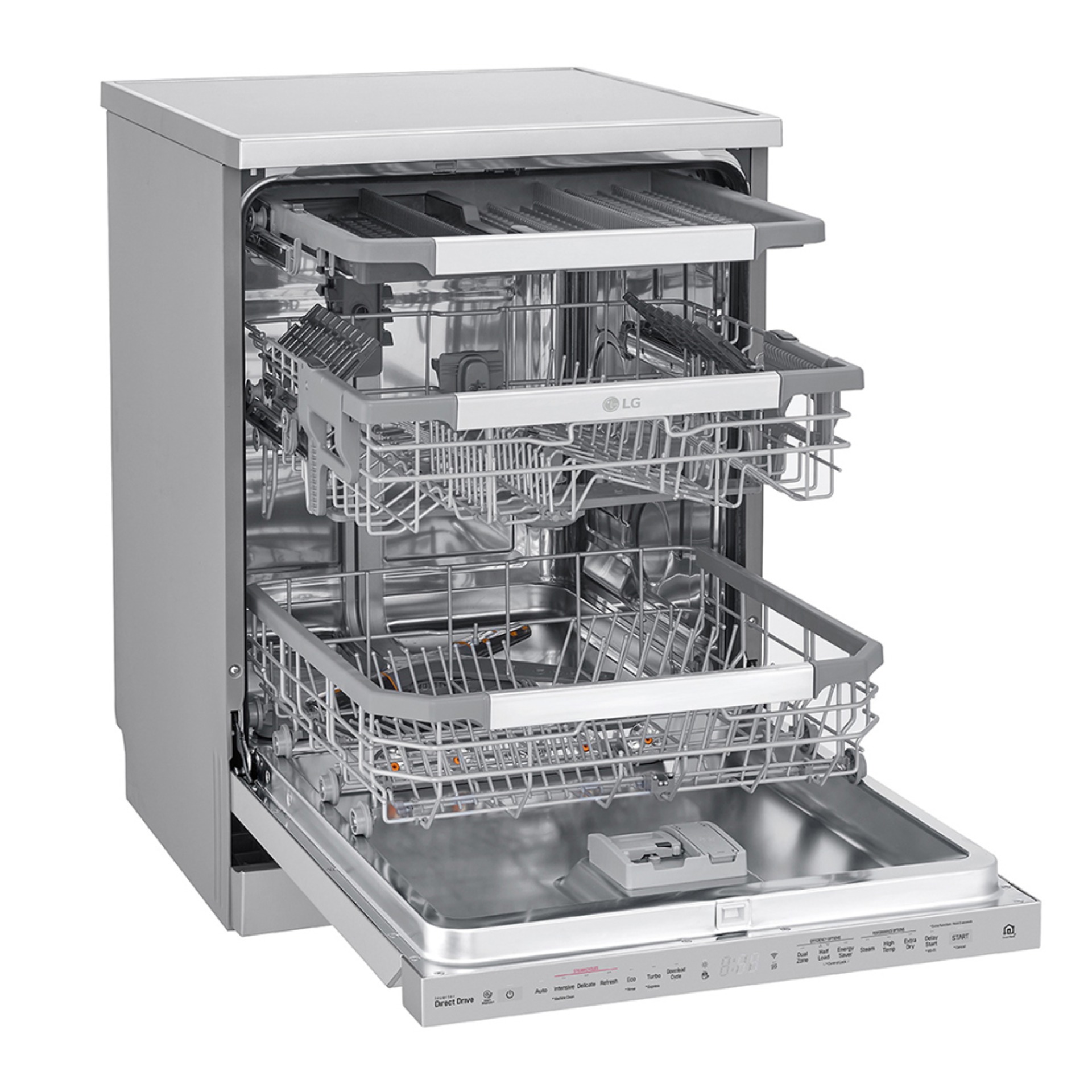 Achieve maximum cleaning throughout the entire cycle with LG QuadWash™. With four spray arms instead of two, QuadWash™ also includes Multi-Motion arms that rotate back and forth while spinning. The high pressure jets power-clean dishes from multiple angles.