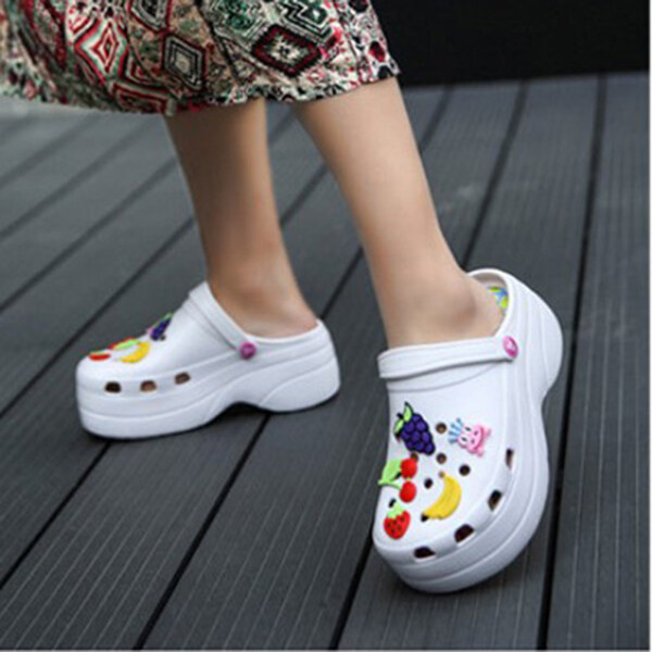 Summer Women Croc Clogs Platform Garden Sandals Cartoon Fruit Slippers Slip On For Girl Beach Shoes Fashion Slides Outdoor